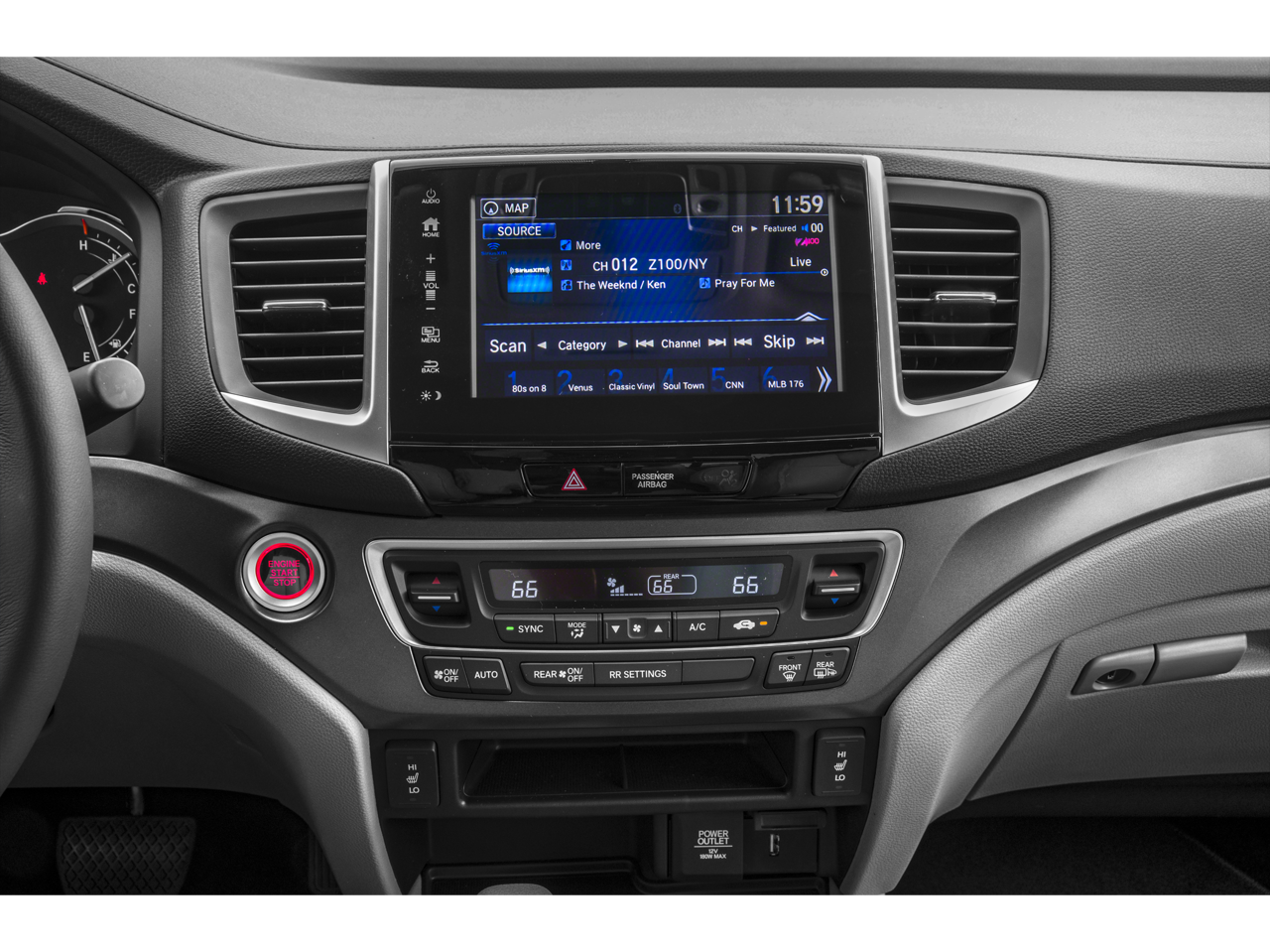 - Radio: AM/FM/MP3 w/Navigation System -inc: 225-watt audio system, 8" display audio w/high-resolution WVGA (800x480) electrostatic touch-screen and customizable feature settings, 7 speakers including subwoofer, Bluetooth® streaming audio, auxiliary input jack, Radio Data System (RDS), speed-sensitive volume control (SVC), 1.5-amp port in front/1.0-amp port in center console, Apple CarPlay, Android Auto, HondaLink, SMS text message function, HD radio, Pandora compatibility and 2.5-amp charging port